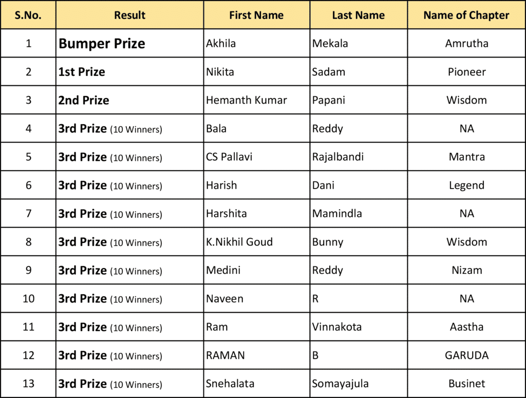Following up on my email dated September 20, 2025, regarding our GoNat’2025 Lucky Dip offer, Today, November 8, 2025, the lucky draw was officially announced by Ms. Sanjana Shah at the BNI Hyderabad region’s LTRT Meeting, in the presence of over 270+ participants.